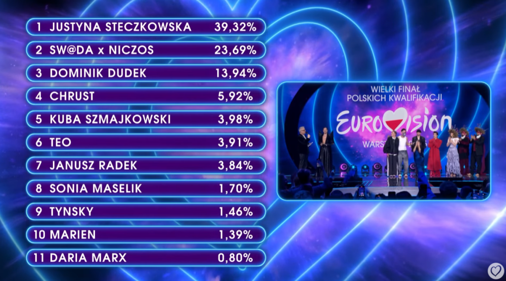 The Polish national selection for the Eurovision Song Contest 2025, Wielki Finał Polskich Kwalifikacji has just wrapped up in TVP’s Studio 5 in Warsaw and we have found the Polish representative for the 69th Eurovision Song Contest in Basel. And we have a winner – it’s Justyna Steczkowska!